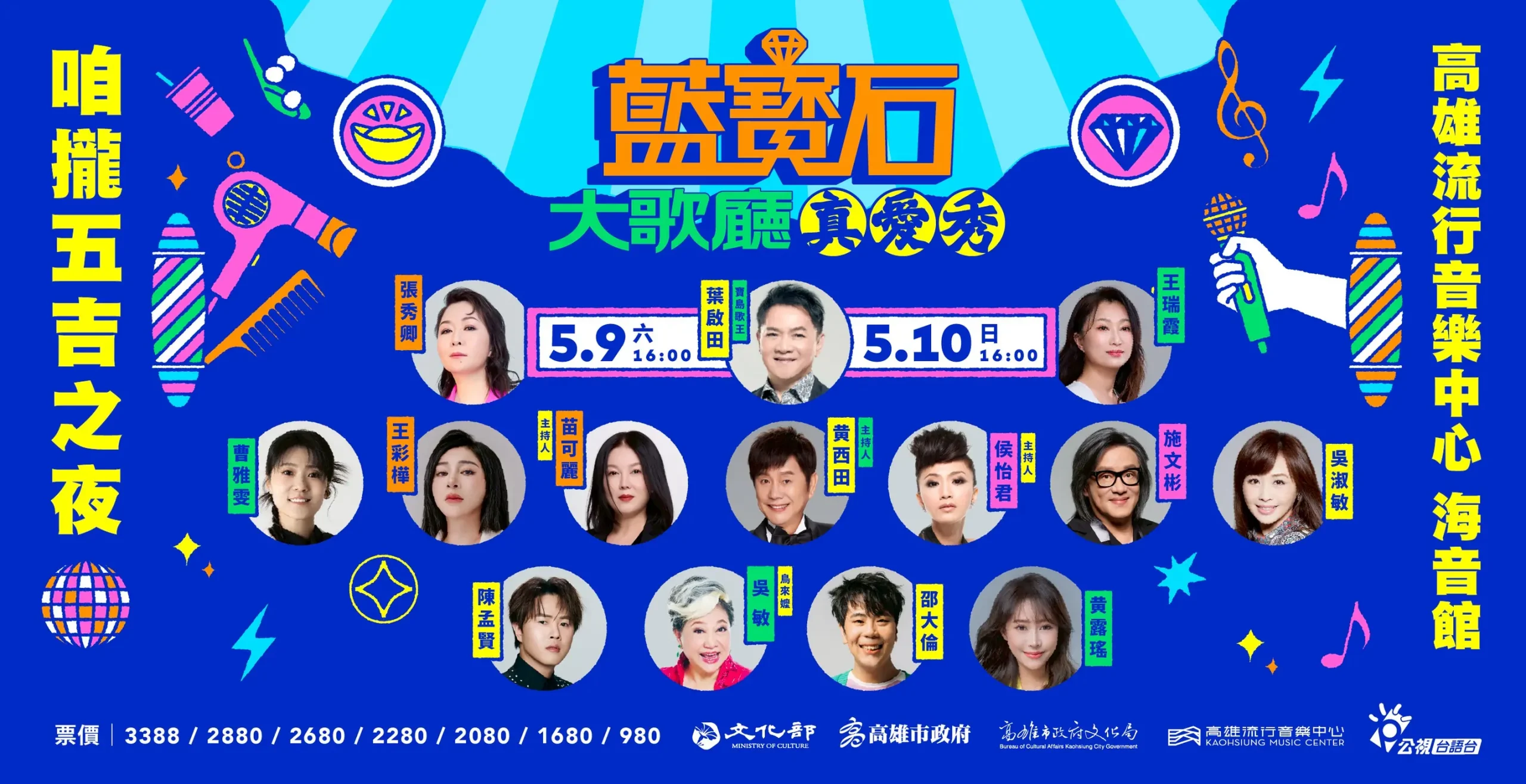 2026《真愛秀.藍寶石大歌廳》演唱會以「咱攏五吉」為主題,呼應第五屆里程碑,同時透過臺語諧音傳遞財運興旺的祝福寓意,節目集結多位實力派藝人輪番演出,主持人黃西田更預告,本屆將「原汁原味」重現歌廳秀的經典演出公式,帶領觀眾重溫最真實的秀場樣貌。今年演唱會週邊更擴大規畫免費體驗區,憑演唱會門票提早到高流,不僅可至音浪塔一樓的「榕樹下卡拉OK歡唱區」和「肩頸按摩區」,現場由深耕高雄20年的杉之秀SPA連鎖芳療護理提供肩頸釋壓、眼周保養與頭部刮療等免費體驗,更於海音館旁增設由高雄在地美髮品牌尤卡髮型集團服務的「復古妝髮體驗區」,可免費享受一秒穿越從龐畢度(Pompadour)到經典半屏山的復古造型;演唱會場外則延續復古氛圍,演出期間將推出集合大腸包小腸、烤黑輪串、草仔粿等經典台灣小吃的古早味市集,直接讓「藍寶石」升級為「全民大歌廳」,成為最超值的全方位孝親體驗!