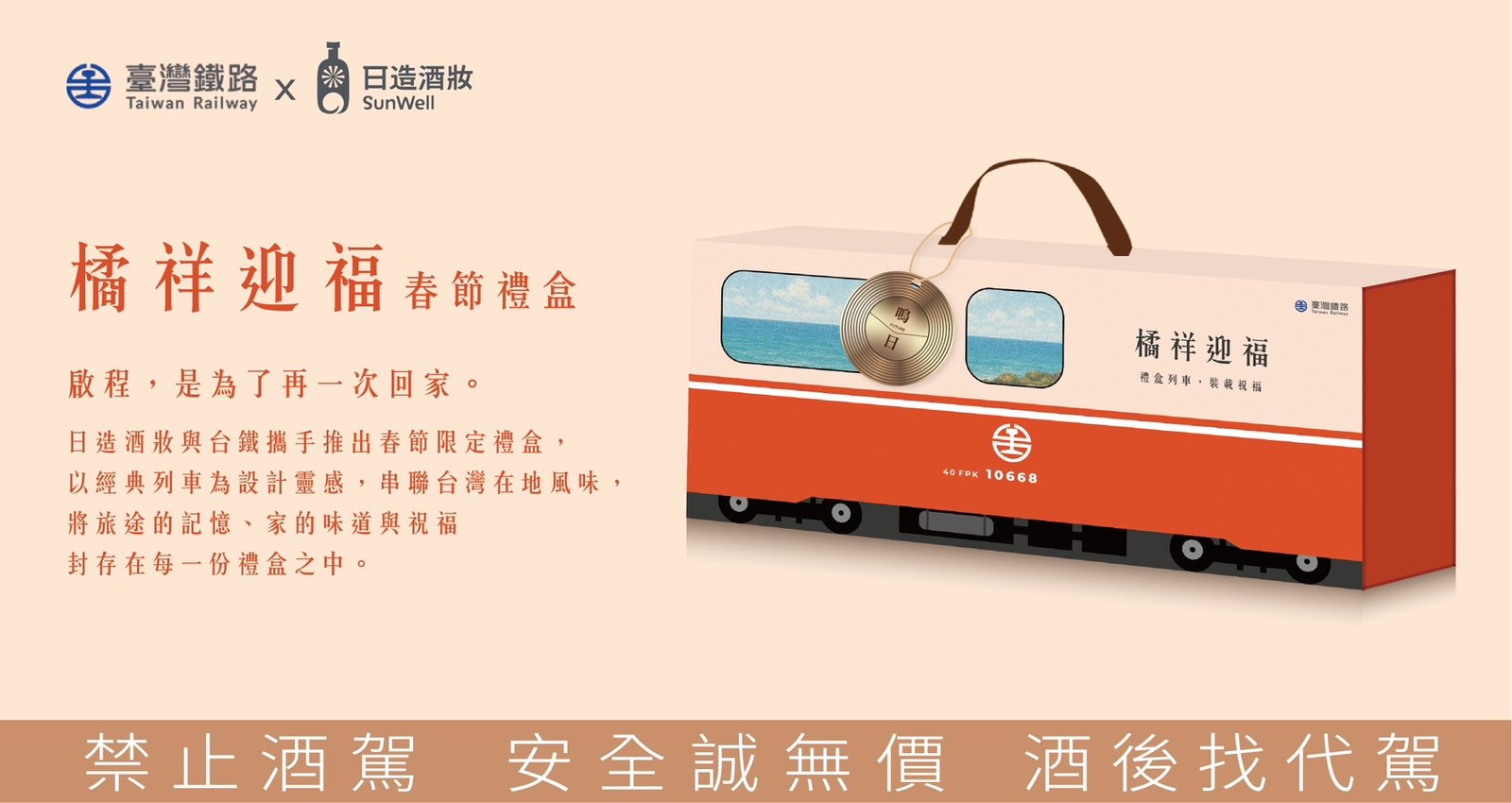 【綜合中心/台北報導】臺鐵公司將於115年1月1日起推出全新春節限定伴手禮「橘祥迎福禮盒」。這是臺鐵首次跨界合作臺灣果釀品牌「日造酒妝」,以「回家」的情感記憶為核心,將鐵道文化與在地風味完美結合,打造一款乘載思念與祝福的新春限定禮盒。