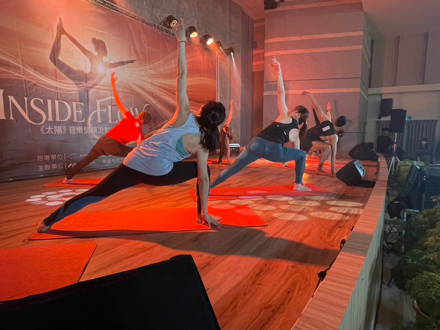 南臺科技大學流行音樂產業系與體育與運動中心攜手合作,於1月9日下午在M棟4樓集賢廳舉辦「Inside Flow成果發表會」,展現音樂情境健身科技跨域整合的創新成果。本次成果展由國家科學及技術委員會指導、流行音樂產業系主辦、體育與運動中心協辦,是南臺科技大學推動跨域整合的重要里程碑。流音系老師林佩儒以國科會計畫「全感知音樂情境健身系統(I)」為研究基礎,結合體育與運動中心邱懿瑩老師的專業執行能力,透過兩系教師與學生共同組成研發與執行團隊,成功將Inside Flow瑜珈課程推廣至校內、外健身社群。